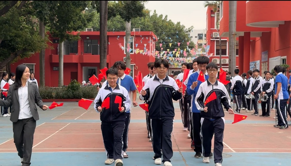 入场仪式结束后,全体人员肃,奏唱国歌,鲜艳的五星红旗冉冉升起。随后,梁校发表致辞,他向运动会的顺利召开表示祝贺,向筹备运动会的工作人员和全体运动员致以诚挚问候。梁校在讲话中强调了体育运动对身心健康的重要意义,鼓励同学们在趣味运动中感受团队协作的力量,在竞技比拼中磨砺意志品质,希望大家以饱满的热情、昂扬的姿态投入比赛,赛出风格、赛出水平,同时预祝运动会取得圆满成功。